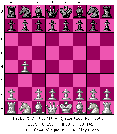 Last move : 1-0 2018 February 3 0:45:58 [Event "FICGS__CHESS__RAPID_C__000141"] [Site "FICGS"] [Date "2018.01.01"] [Round "1"] [White "Hilbert,Stephan J."] [Black "Ryazantsev,Alexander"] [Result "1-0"] [WhiteElo "1674"] [BlackElo "1500"] 1.b4 1-0 This chess game has been lost on time (started : 2018.01.01 22:25:37) Polish (Sokolsky) opening Player White won this chess game. Follow this game move after move (download)One doesn't have to play well, it's enough to play better than your opponent. (Siegbert Tarrasch) Ich verlor meine Bürgerrechte, mein Gehalt wurde mir nicht mehr bezahlt und ich wurde zensiert und durfte nicht mehr ins Ausland reisen. [nach dem Match Fischer-Taimanov 6:0] (Mark Taimanov) Observen a Garry Kasparov. Después de una derrota, invariablemente el gana la próxima partida. Prácticamente hace pedazos a su siguiente oponente. Eso es algo que tenemos que aprender a lograr. (Maurice Ashley) Le thème de l'attaque double intervient d'une manière ou d'une autre dans l'immense majorité des combinaisons. (Youri Averbakh) The beginning of wisdom is silence. The second step is listening. (Unknown)
