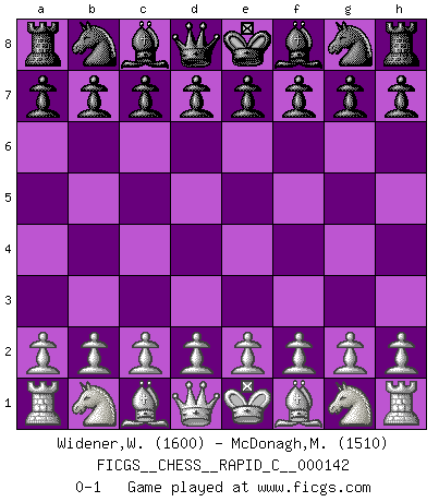 Last move : 0-1 2018 January 20 23:44:44 [Event "FICGS__CHESS__RAPID_C__000142"] [Site "FICGS"] [Date "2017.12.21"] [Round "1"] [White "Widener,William"] [Black "McDonagh,Michael"] [Result "0-1"] [WhiteElo "1600"] [BlackElo "1510"] 0-1 This chess game has been lost on time (started : 2017.12.21 23:17:16) Player Black won this chess game. Follow this game move after move (download)Chess is war over the board. The object is to crush the opponents mind. (Bobby Fischer) Die Idee von Capablanca, Schach als Fach in den Schulen zu lehren, ist großartig. (Fidel Castro) Debemos de asegurarnos de que el Ajedrez no se convierta en un lenguaje muerto, muy interesante, pero solo para un grupo muy pequeño. (Sytze Faber) A ce moment-là, je menaçais de comprendre la position ! (Clément L'Heureux) SEO proverb : Make your website optimized for human beings, not for search engines.
