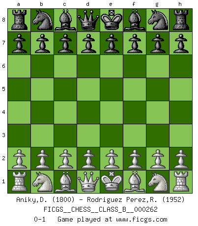 Last move : 0-1 2018 January 18 11:41:23 [Event "FICGS__CHESS__CLASS_B__000262"] [Site "FICGS"] [Date "2017.12.09"] [Round "1"] [White "Aniky,Delfianto Roi"] [Black "Rodriguez Perez,Rene"] [Result "0-1"] [WhiteElo "1800"] [BlackElo "1952"] 0-1 This chess game has been lost on time (started : 2017.12.09 1:32:52) Player Black won this chess game. Follow this game move after move (download)Man is a frivolous, a specious creature, and like a Chess player, cares more for the process of attaining his goal than for the goal itself. (Dostoyevsky) Fischer ist das größte Genie, das je vom Schachhimmel heruntergestiegen ist. (Mikhail Nekhemyevich Tal) ¿Quién es tu oponente esta tarde? Esta tarde mi oponente son las piezas negras. (Akiba Rubinstein) On a dit que l'homme se distingue de l'animal par le fait qu'il achète plus de livres qu'il ne peut en lire. Je voudrais suggérer qu'inclure à la liste des livres quelques livres d'échecs rendrait la distinction manifeste. (Edward Lasker) Children in the dark cause accidents, accidents in the dark cause children. (Unknown)