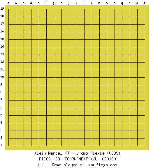 Last move : 0-1 2018 January 8 22:40:51 [Event "FICGS__GO__TOURNAMENT_KYU__000180"] [Site "FICGS"] [Date "2017.12.09"] [Round "1"] [Black "Klein,Marcel"] [White "Bromo,Alexis"] [Result "0-1"] [Rating 2 "0685"] 0-1 This go game has been lost on time (started : 2017.12.09 11:49:23) Here are the names of the openings (joseki) played in the four corners : Player White won this Go (weiqi, baduk) game. Follow this game move after move (download)Each step in a ladder is worth 7 points. (Anonymous) Experiences are the keys to life. (Daniel Parmet)