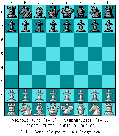 Last move : 0-1 2018 February 20 2:40:34 [Event "FICGS__CHESS__RAPID_D__000108"] [Site "FICGS"] [Date "2018.01.21"] [Round "1"] [White "Veijola,Juha"] [Black "Stephen,Zack"] [Result "0-1"] [WhiteElo "1400"] [BlackElo "1406"] 0-1 This chess game has been lost on time (started : 2018.01.21 0:15:20) Player Black won this chess game. Follow this game move after move (download)Chess is a terrible game. If you have no center, your opponent has a freer position. If you do have a center, then you really have something to worry about ! (Siegbert Tarrasch) Schach ist mein Leben, meine Leidenschaft, was ich gelernt habe und seit meinem 14. Lebensjahr profimässig praktiziere. Darauf zu verzichten, würde mir sehr schwer fallen. (Viktor Kortschnoi) Algunos sacrificios son sólidos, los demás son míos. (Mikhail Tal) Les échecs c'est le défi de l'alpiniste, toujours plus haut, prêt à tout pour monter à l'assaut du Roi ennemi. Les échecs, c'est de la musique en mouvement, un ballet majestueux pour les yeux. C'est de la poésie composée par les fantômes du passé qui au même titre que Rimbaud ou Verlaine méritent notre admiration. Les échecs, c'est de la peinture ou le moindre mouvement modifie le tableau pour en faire un Picasso ou un Van Gogh. Les échecs, c'est tout et rien, c'est la vie et la mort. Jjulie33 sur le forum de France-Echecs. Internal peace cannot coexist with external war. (Don Groves)