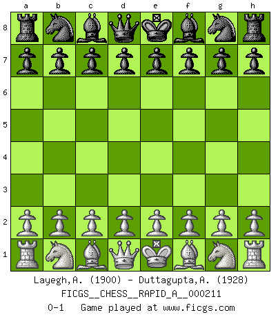 Last move : 0-1 2018 March 18 5:44:36 [Event "FICGS__CHESS__RAPID_A__000211"] [Site "FICGS"] [Date "2018.02.15"] [Round "1"] [White "Layegh,Akam"] [Black "Duttagupta,Aniruddha"] [Result "0-1"] [WhiteElo "1900"] [BlackElo "1928"] 0-1 This chess game has been lost on time (started : 2018.02.15 19:30:48) Player Black won this chess game. Follow this game move after move (download)Even the laziest King flees wildly in the face of a double check ! (Aaron Nimzowitsch) Was ist der Unterschied zwischen einem Strassenarbeiter und einem Schachspieler? --Der Schachspieler bewegt sich ab und zu. (Anonymous) El Jaque al descubierto es el bombardero del tablero. (Reuben Fine) Je ne suis pas le dernier à jouer lâchement des coups douteux pendant le zeïtnot de l'adversaire pour l'achever: en effet les coups qui font le plus peur sont ceux que l'on ne comprend pas. Je me fais souvent peur quand je joue. (Un professeur anonyme) Life is like a ten-speed bicycle: most of us have gears we never use. (Charles M. Schulz)
