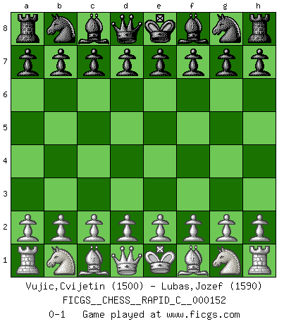 Last move : 0-1 2018 April 17 9:9:45 [Event "FICGS__CHESS__RAPID_C__000152"] [Site "FICGS"] [Date "2018.03.18"] [Round "1"] [White "Vujic,Cvijetin"] [Black "Lubas,Jozef"] [Result "0-1"] [WhiteElo "1500"] [BlackElo "1590"] 0-1 This chess game has been lost on time (started : 2018.03.18 2:21:14) Player Black won this chess game. Follow this game move after move (download)Chess teaches you to control the initial excitement you feel when you see something that looks good and it trains you to think objectively when you're in trouble. (Stanley Kubrick) Es tut gut, die Entwicklungsperiode von, [...] demokratischem Geist durchdringen zu lassen. Wie undemokratisch wäre es doch beispielsweise, den einen Offizier große Spaziertouren vornehmen zu lassen, während die anderen zu Hause säßen und sich entsetzlich langweilten. (Aaron Nimzowitsch) No hay precio que sea tan grande por la cabellera del Rey enemigo. (Koblentz) J'ai vu le vaincu d'Echecs jouer des années durant dans l'espoir de la fête de la victoire. Car tu es plus riche de ce qu'elle existe si même elle n'est point pour toi. Ainsi de la perle du fond des mers. (Antoine de Saint-Exupéry) Man is still the most extraordinary computer of all. (John F. Kennedy)