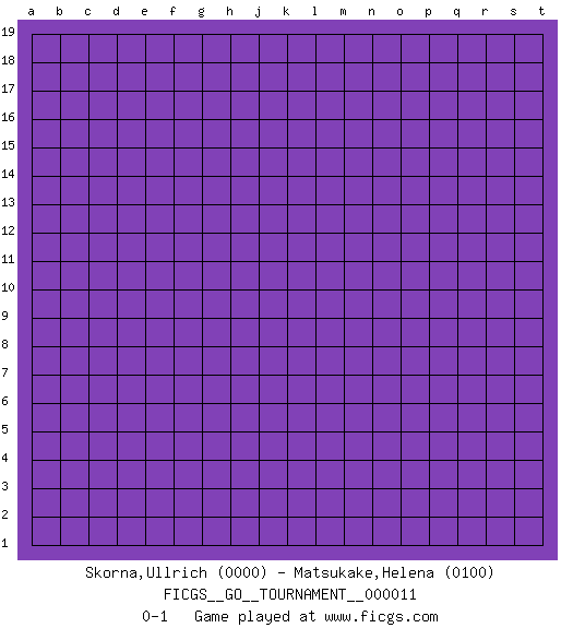 Last move : 0-1 2018 March 24 6:12:19 [Event "FICGS__GO__TOURNAMENT__000011"] [Site "FICGS"] [Date "2018.02.22"] [Round "1"] [Black "Skorna,Ullrich"] [White "Matsukake,Helena"] [Result "0-1"] [Rating 1 "0000"] [Rating 2 "0100"] 0-1 This go game has been lost on time (started : 2018.02.22 4:37:19) Here are the names of the openings (joseki) played in the four corners : Player White won this Go (weiqi, baduk) game. Follow this game move after move (download)Learning josekis by heart is useless if you don't try departing from them. (Pierre Audouard) God, you are such an idiot. - Actually, I thought I was more of a jerk. (Gregory House to Stacy Warner, House M.D.)