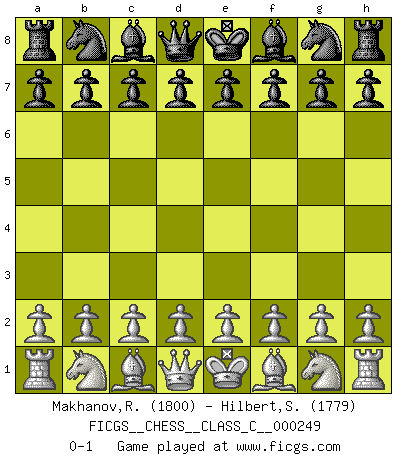Last move : 0-1 2018 April 10 8:43:42 [Event "FICGS__CHESS__CLASS_C__000249"] [Site "FICGS"] [Date "2018.03.01"] [Round "1"] [White "Makhanov,Roman"] [Black "Hilbert,Stephan J."] [Result "0-1"] [WhiteElo "1800"] [BlackElo "1779"] 0-1 This chess game has been lost on time (started : 2018.03.01 0:58:1) Player Black won this chess game. Follow this game move after move (download)Pawns are born free, yet they are everywhere in chains. (Rick Kennedy) Vom Schach wurde gesagt das Leben sei dafür nicht lange genug. Aber das ist der Fehler des Lebens, nicht des Schach'. (Irving Chernev) Durante una competencia de Ajedrez, un Maestro de Ajedrez deberá ser una combinación de presa de caza y un Monge. (Alexander Alekhine) La menace est plus forte que l'exécution. (Aaron Nimzovitch) The question of whether computers can think is just like question of whether submarines can swim. (Edsger W. Dijkstra)