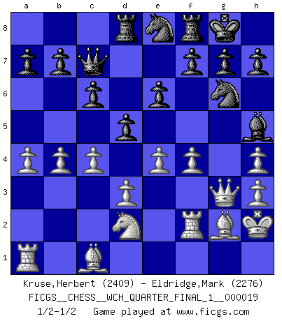 FICGS__CHESS__WCH_QUARTER_FINAL_1__000019 (type : rated knockout, time : 30 days, increment : 1 day / move)