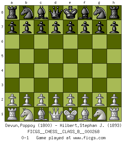 Last move : 0-1 2018 May 5 10:37:51 [Event "FICGS__CHESS__CLASS_B__000268"] [Site "FICGS"] [Date "2018.03.26"] [Round "1"] [White "Devun,Poppoy"] [Black "Hilbert,Stephan J."] [Result "0-1"] [WhiteElo "1800"] [BlackElo "1893"] 0-1 This chess game has been lost on time (started : 2018.03.26 4:25:38) Player Black won this chess game. Follow this game move after move (download)In blitz, the Knight is stronger than the Bishop. (Vlastimil Hort) Alles was ich jemals tun will ist Schach spielen. (Robert James Fischer) No es tiempo de jugar al Ajedrez cuando la casa esta en llamas. (Proverbio Italiano) Le système Elo représente seulement une moyenne. Il est simplement un indicateur de votre stabilité. (Anatoli Karpov) Secret operations are essential in war; upon them the army relies to make its every move. (Sun Tzu)