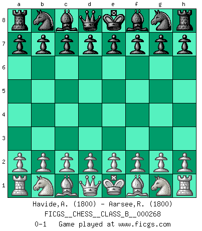 Last move : 0-1 2018 May 5 10:37:51 [Event "FICGS__CHESS__CLASS_B__000268"] [Site "FICGS"] [Date "2018.03.26"] [Round "1"] [White "Havide,Abdulkerim"] [Black "Aarsee,Ramchandanbapu"] [Result "0-1"] [WhiteElo "1800"] [BlackElo "1800"] 0-1 This chess game has been lost on time (started : 2018.03.26 4:25:38) Player Black won this chess game. Follow this game move after move (download)The essence of Chess is thinking about what Chess is. (David Bronstein) Du weisst es gibt ein Problem mit Computern und Fernschach, wenn jeder eine Rating von 2450 hat. (John Christen Knudsen) Diferente gente reacciona diferentemente en aceptar la derrota. (Bobby Fischer) Avant la finale, les dieux ont créé le milieu de partie. (Tarrasch) Looking at the proliferation of personal web pages on the Net, it looks like very soon everyone on Earth will have 15 megabytes of fame. (M.G. Sriram)