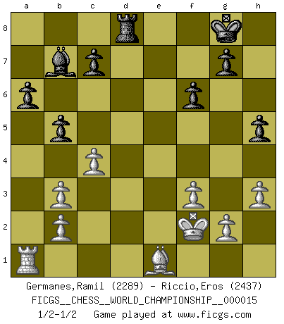 FICGS__CHESS__WORLD_CHAMPIONSHIP__000015 (type : rated knockout, time : 30 days, increment : 1 day / move)