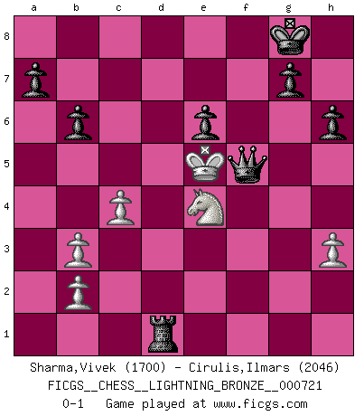 FICGS__CHESS__LIGHTNING_BRONZE__000721 (type : rated knockout, time : 0 day, 00:20:00, increment : 0 day, 00:00:30 / move)