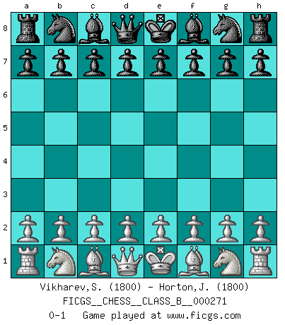 Last move : 0-1 2018 May 21 23:46:56 [Event "FICGS__CHESS__CLASS_B__000271"] [Site "FICGS"] [Date "2018.04.11"] [Round "1"] [White "Vikharev,Sergey"] [Black "Horton,Johnathan"] [Result "0-1"] [WhiteElo "1800"] [BlackElo "1800"] 0-1 This chess game has been lost on time (started : 2018.04.11 21:32:33) Player Black won this chess game. Follow this game move after move (download)A Chess game is divided into three stages: the first, when you hope you have the advantage, the second when you believe you have an advantage, and the third... when you know you're going to lose ! (Savielly Tartakower) Im Schach gewinnt jeder. Hat man Freunde am Spiel - und das ist die Hauptsache - ist auch der Verlust einer Partie kein Unglück. (David Bronstein) Una partida de Ajedrez se divide en 3 etapas: la primera cuando piensas que tienes la ventaja, la segunda cuando crees que tienes la ventaja y la tercera... ¡cuando te das cuenta que vas a perder!. (Savielly Tartakower) Toutes les manuvres exécutées sur une colonne ouverte ont pour but ultime l'intrusion définitive sur la septième ou la huitième rangée, en plein cur de la position ennemie. (Aaron Nimzovitch) It is the aim of the modern school, not to treat every position according to one general law, but according to the principle inherent in the position. (Richard Reti)