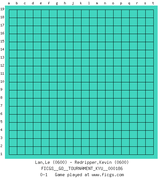 Last move : 0-1 2018 May 17 23:32:52 [Event "FICGS__GO__TOURNAMENT_KYU__000186"] [Site "FICGS"] [Date "2018.04.17"] [Round "1"] [Black "Lan,Le"] [White "Redripper,Kevin"] [Result "0-1"] [Rating 1 "0600"] [Rating 2 "0600"] 0-1 This go game has been lost on time (started : 2018.04.17 20:37:29) Here are the names of the openings (joseki) played in the four corners : Player White won this Go (weiqi, baduk) game. Follow this game move after move (download)With less than 15 stones in danger, tenuki. (Anonymous) Whatever you do, don't be bored. This is absolutely the most exciting time we could have possibly hoped to be alive. And things are just starting. (From movie Waking life)