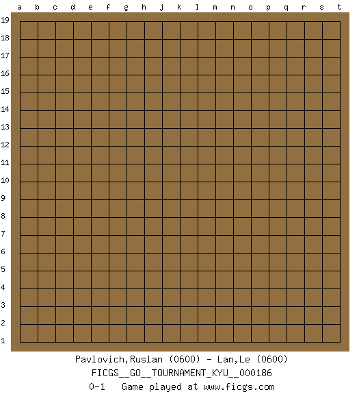 Last move : 0-1 2018 May 17 23:32:52 [Event "FICGS__GO__TOURNAMENT_KYU__000186"] [Site "FICGS"] [Date "2018.04.17"] [Round "1"] [Black "Pavlovich,Ruslan"] [White "Lan,Le"] [Result "0-1"] [Rating 1 "0600"] [Rating 2 "0600"] 0-1 This go game has been lost on time (started : 2018.04.17 20:37:29) Here are the names of the openings (joseki) played in the four corners : Player White won this Go (weiqi, baduk) game. Follow this game move after move (download)Go uses the most elemental materials and concepts - line and circle, wood and stone, black and white - combining them with simple rules to generate subtle strategies and complex tactics that stagger the imagination. (Iwamoto Kaoru, 9 dan professional Go player and former Honinbo title holder) Life is painting a picture, not doing a sum. (Oliver Wendell Holmes, Jr.)