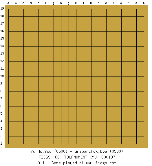 Last move : 0-1 2018 June 14 2:43:28 [Event "FICGS__GO__TOURNAMENT_KYU__000187"] [Site "FICGS"] [Date "2018.05.14"] [Round "1"] [Black "Yu Ho,Yoo"] [White "Grabarchuk,Eva"] [Result "0-1"] [Rating 1 "0600"] [Rating 2 "0500"] 0-1 This go game has been lost on time (started : 2018.05.14 19:46:17) Here are the names of the openings (joseki) played in the four corners : Player White won this Go (weiqi, baduk) game. Follow this game move after move (download)Each step in a ladder is worth 7 points. (Anonymous) It's only after you lost everything, Tyler says, that you're free to do anything. (Chuck Palahniuk, Fight Club)