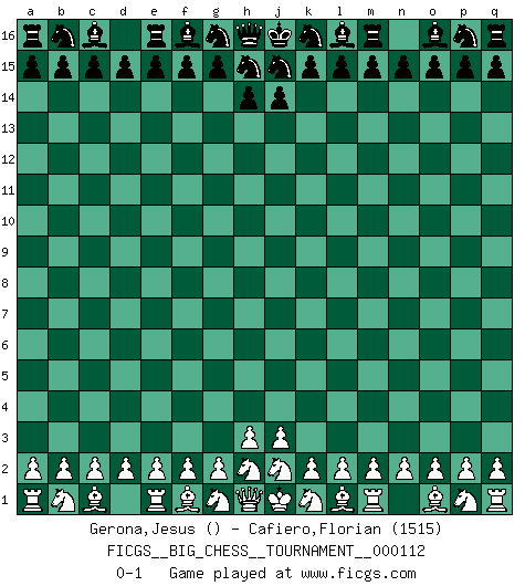 Last move : 0-1 2018 June 4 15:27:8 [Event "FICGS__BIG_CHESS__TOURNAMENT__000112"] [Site "FICGS"] [Date "2018.05.30"] [Round "1"] [White "Gerona,Jesus"] [Black "Cafiero,Florian"] [Result "0-1"] [WhiteElo ""] [BlackElo "1515"] 0-1 Follow this game move after move (download)Chess is a terrible game. If you have no center, your opponent has a freer position. If you do have a center, then you really have something to worry about ! (Siegbert Tarrasch) Ein Remis kann durch Wiederholung von drei Zügen oder durch einen schlechte Zug erreicht werden. (Savielly Grigorievitsch Tartakower) Bendita sea la memoria de aquel que dio al mundo este juego inmortal. (A. G. Gardiner) On a dit que l'homme se distingue de l'animal par le fait qu'il achète plus de livres qu'il ne peut en lire. Je voudrais suggérer qu'inclure à la liste des livres quelques livres d'échecs rendrait la distinction manifeste. (Edward Lasker) Now you put water in a cup, it becomes the cup; You put water into a bottle it becomes the bottle; You put it in a teapot it becomes the teapot. Water can flow or it can crash. Be water, my friend. (Bruce Lee)