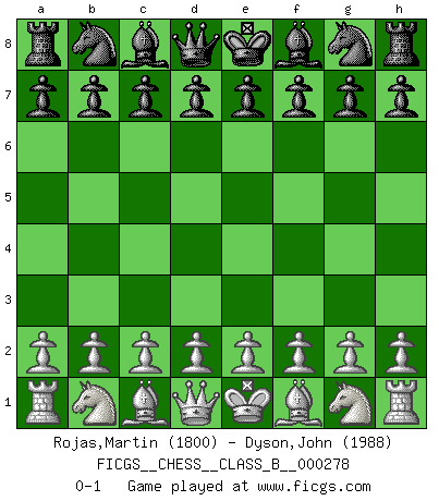 Last move : 0-1 2018 July 21 8:6:14 [Event "FICGS__CHESS__CLASS_B__000278"] [Site "FICGS"] [Date "2018.06.11"] [Round "1"] [White "Rojas,Martin"] [Black "Dyson,John"] [Result "0-1"] [WhiteElo "1800"] [BlackElo "1988"] 0-1 This chess game has been lost on time (started : 2018.06.11 2:38:7) Player Black won this chess game. Follow this game move after move (download)The blunders are all there on the board, waiting to be made. (Savielly Tartakover) Es ist besser die Steine des Gegners zu opfern. (Savielly Grigorievitsch Tartakower) No hay precio que sea tan grande por la cabellera del Rey enemigo. (Koblentz) Les Echecs représentent une sphère d'idées créatrices basée sur la volonté des deux protagonistes. (Smyslov) Luck never gives; it only lends. (Swedish proverb)