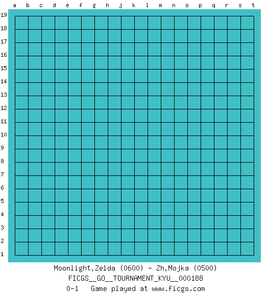Last move : 0-1 2018 July 16 19:49:4 [Event "FICGS__GO__TOURNAMENT_KYU__000188"] [Site "FICGS"] [Date "2018.06.16"] [Round "1"] [Black "Moonlight,Zelda"] [White "Zh,Mojka"] [Result "0-1"] [Rating 1 "0600"] [Rating 2 "0500"] 0-1 This go game has been lost on time (started : 2018.06.16 14:43:57) Here are the names of the openings (joseki) played in the four corners : Player White won this Go (weiqi, baduk) game. Follow this game move after move (download)Error is one of the sources of transformation. (Pierre Audouard) There are more things in heaven and earth than practically anywhere else. (Unknown)