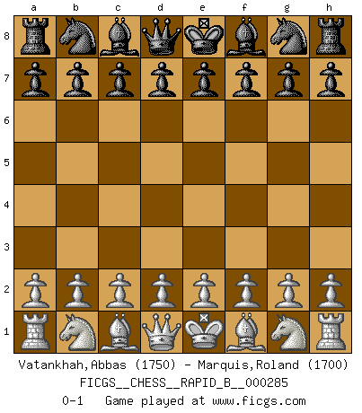 Last move : 0-1 2018 July 23 8:18:5 [Event "FICGS__CHESS__RAPID_B__000285"] [Site "FICGS"] [Date "2018.06.22"] [Round "1"] [White "Vatankhah,Abbas"] [Black "Marquis,Roland"] [Result "0-1"] [WhiteElo "1750"] [BlackElo "1700"] 0-1 This chess game has been lost on time (started : 2018.06.22 22:27:14) Player Black won this chess game. Follow this game move after move (download)Alekhine is a poet who creates a work of art out of something that would hardly inspire another man to send home a picture post card. (Max Euwe) Wenn ich mich einlogge, glauben die Leute gewöhnlich nicht, dass ich es selbst bin und sie fangen an, mir dumme Fragen zu stellen. Und wenn sie es glauben, stellen sie wieder andere dumme Fragen. (Judith Polgar) Fischer sacrificó virtualmente todo lo que la mayoría de nosotros los 'debiles' (término que él usa) valoramos, respetamos y apreciamos por el amor de un astuto, a menudo hermoso tablero de juego, por el privilegio ambivalente de ser su mas grande maestro. (Paul Kollar) Le profane ne songe pas à la somme de jouissance dont il se prive, qui méconnaît ce jeu aux ressources aussi variées que passionnantes. (Jean-Marie Jeanton-Lamarche) Any activity becomes creative when the doer cares about doing it right or doing it better. (John Updike)