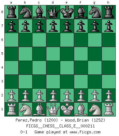 Last move : 0-1 2018 August 9 21:57:8 [Event "FICGS__CHESS__CLASS_E__000211"] [Site "FICGS"] [Date "2018.06.30"] [Round "1"] [White "Perez,Pedro"] [Black "Wood,Brian"] [Result "0-1"] [WhiteElo "1200"] [BlackElo "1252"] 0-1 This chess game has been lost on time (started : 2018.06.30 14:58:40) Player Black won this chess game. Follow this game move after move (download)On the chessboard, lies and hypocrisy do not survive long. (Emanuel Lasker) Ein Remis kann durch Wiederholung von drei Zügen oder durch einen schlechte Zug erreicht werden. (Savielly Grigorievitsch Tartakower) Yo tuve un dolor de muelas en la primer partida. En el segundo juego, tuve un dolor de cabeza. En el tercero, tuve un ataque de reumatísmo. En la cuarta partida, no me sentía muy bien. ¿Y en el quinto juego? Bueno, ¿que acaso uno tiene que ganar todos los juegos?. (Siegbert Tarrasch) En blitz, le Cavalier l'emporte sur le Fou. (Vlastimil Hort) The obstacle is the path. (Zen proverb)