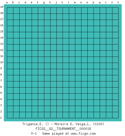Last move : 0-1 2018 July 7 7:53:40 [Event "FICGS__GO__TOURNAMENT__000018"] [Site "FICGS"] [Date "2018.07.06"] [Round "1"] [Black "Trigance,Emile"] [White "Moreira D. Veiga,Ludovic"] [Result "0-1"] [Rating 2 "0100"] 0-1 Here are the names of the openings (joseki) played in the four corners : Player White won this Go (weiqi, baduk) game. Follow this game move after move (download)At the head of two stones in a row, play hane. (Anonymous) He who is a good ruler must first have been ruled. (Aristotle)