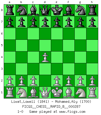 Last move : 1-0 2018 August 7 21:53:26 [Event "FICGS__CHESS__RAPID_B__000287"] [Site "FICGS"] [Date "2018.07.08"] [Round "1"] [White "Liwat,Lowell"] [Black "Mohamed,Aly"] [Result "1-0"] [WhiteElo "1841"] [BlackElo "1700"] 1.d4 1-0 This chess game has been lost on time (started : 2018.07.08 11:17:2) Queen's pawn Player White won this chess game. Follow this game move after move (download)An attack on the wing should be met by play in the center. (Nimzovitch) Ivan Sokolov treibt mich als Beifahrer an mit go Loeky go - . (Loek van Wely) Bobby Fischer es el mas grande genio de Ajedrez de todos los tiempos. (Alexander Kotov) C'est la seule position que je connaisse où les deux camps sont mals. Propos prêtés à V. Anand. History is the quarrels of popes and kings, with wars or pestilences in every page; the men all so good for nothing, and hardly any women at all. (Jane Austen)