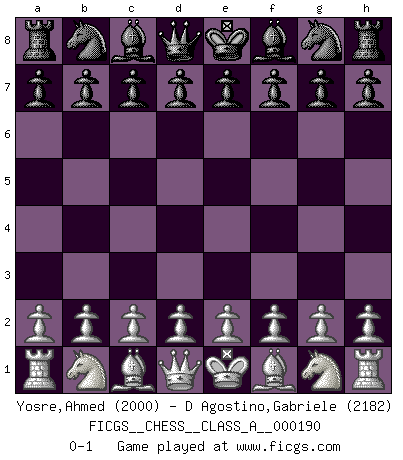 Last move : 0-1 2018 August 29 23:10:43 [Event "FICGS__CHESS__CLASS_A__000190"] [Site "FICGS"] [Date "2018.07.20"] [Round "1"] [White "Yosre,Ahmed"] [Black "D Agostino,Gabriele"] [Result "0-1"] [WhiteElo "2000"] [BlackElo "2182"] 0-1 This chess game has been lost on time (started : 2018.07.20 16:21:9) Player Black won this chess game. Follow this game move after move (download)In a gambit you give up a Pawn for the sake of getting a lost game. (Samuel Standige Boden) Sehr viele beherrschen heutzutage das große Einmalseins des Schachspiels und kennen sogar dessen Logarithmentafeln auswendig - deshalb sollte man hin und wieder zu beweisen trachten, dass zwei mal zwei auch fünf sein kann. (Mikhail Nekhemyevich Tal) El sobresalir en el Ajedrez es un signo de una mente intrigante. (Sir Arthur Conan Doyle) D'abord les bases : Jouez et étudiez, puis étudiez et jouez, ensuite jouez et étudiez, puis étudiez et jouez. Deuxièmement : Donnez toujours le meilleur de vous-même ! (Ken Smith) Computers are like Old Testament gods; lots of rules and no mercy. (Joseph Campbell)