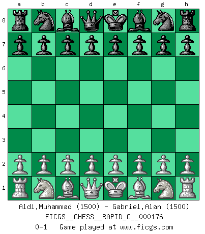 Last move : 0-1 2018 August 30 11:19:45 [Event "FICGS__CHESS__RAPID_C__000176"] [Site "FICGS"] [Date "2018.07.31"] [Round "1"] [White "Aldi,Muhammad"] [Black "Gabriel,Alan"] [Result "0-1"] [WhiteElo "1500"] [BlackElo "1500"] 0-1 This chess game has been lost on time (started : 2018.07.31 2:48:3) Player Black won this chess game. Follow this game move after move (download)The older I grow, the more I value pawns. (Paul Keres) Bobby Fischer ist kein Vorbild für die heutige Jugend. (Viktor Kortschnoi) Robert Fischer es la ley hacia si mismo. (Larry Evans) Même si l'adversaire joue le coup analysé précédemment, recommencez l'analyse en voyant la nouvelle position. Première règle de Blumenfeld A proverb is a short sentence based on long experience. (Miguel de Cervantes)