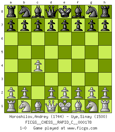 Last move : 1-0 2018 September 4 11:45:12 [Event "FICGS__CHESS__RAPID_C__000178"] [Site "FICGS"] [Date "2018.08.05"] [Round "1"] [White "Horoshilov,Andrey"] [Black "Uye,Sinay"] [Result "1-0"] [WhiteElo "1744"] [BlackElo "1500"] 1.c4 1-0 This chess game has been lost on time (started : 2018.08.05 6:37:5) English Opening Player White won this chess game. Follow this game move after move (download)Bobby is the most misunderstood, misquoted celebrity walking the face of this earth. (Yasser Seirawan) Zeige mir drei Eröffnungsvarianten und ich beweise dir, dass zwei davon inkorrekt sind. (Emanuel Lasker) Debió haber existido una vez en que los hombres eran semidióses, de otra manera no hubiesen podido inventar el Ajedrez. (Gustav Schenk) Assurément je connaissais par expérience le mystérieux attrait de ce jeu royal, le seul entre tous les jeux inventés par les hommes qui échappe souverainement à la tyrannie du hasard, le seul où l'on ne doive sa victoire qu'à son intelligence ou plutôt à une certaine forme d'intelligence. Mais n'est-ce pas déjà le limiter injurieusement que d'appeler les échecs un jeu ? N'est-ce pas une science, un art ou quelque chose qui, comme le cercueil de Mahomet entre ciel et terre, est suspendu entre l'un et l'autre, et qui réunit un nombre incroyable de contraires ? [...] C'est une pensée qui ne mène à rien, une mathématique qui n'établit rien, un art qui ne laisse pas d'uvre, une architecture sans matière; et il l'a prouvé néanmoins qu'il était plus durable, à sa manière, que les livres ou que tout autre monument, ce jeu unique qui appartient à tous les peuples et à tous les temps, et dont personne ne sait quel dieu en fit don à la terre pour tuer l'ennui, pour aiguiser l'esprit et stimuler l'âme. Où commence-t-il, où finit-il ? (Stefan Zweig) Perseverance does not equal worthiness. Next time you want to get my attention, wear something fun. Low-riding jeans are hot. (Gregory House, House M.D.)