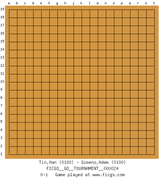 Last move : 0-1 2018 October 10 19:29:7 [Event "FICGS__GO__TOURNAMENT__000024"] [Site "FICGS"] [Date "2018.09.10"] [Round "1"] [Black "Tin,Han"] [White "Gimeno,Adem"] [Result "0-1"] [Rating 1 "0100"] [Rating 2 "0100"] 0-1 This go game has been lost on time (started : 2018.09.10 18:54:54) Here are the names of the openings (joseki) played in the four corners : Player White won this Go (weiqi, baduk) game. Follow this game move after move (download)Beginner's games are surprising, often incoherent and incomprehensible. When you improve, your game gains in consistency but flirts with stupidity: you become satisfied with truisms and mechanical movements, you try to obtain a feeling for clearness and style the easy way. (Pierre Audouard) No enterprise is more likely to succeed than one concealed from the enemy until it is ripe for execution. (Niccolo Machiavelli)