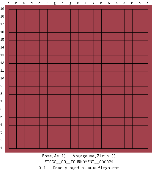 Last move : 0-1 2018 October 10 19:29:7 [Event "FICGS__GO__TOURNAMENT__000024"] [Site "FICGS"] [Date "2018.09.10"] [Round "1"] [Black "Rose,Je"] [White "Voyageuse,Zizio"] [Result "0-1"] 0-1 This go game has been lost on time (started : 2018.09.10 18:54:54) Here are the names of the openings (joseki) played in the four corners : Player White won this Go (weiqi, baduk) game. Follow this game move after move (download)... {it is} something unearthly... if there are sentient beings on other planets, then they play go. (Emanuel Lasker, chess world champion) The Internet is so big, so powerful and pointless that for some people it is a complete substitute for life. (Andrew Brown)