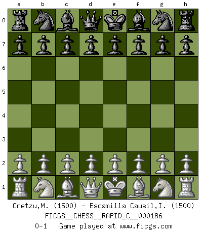 Last move : 0-1 2018 October 23 9:48:29 [Event "FICGS__CHESS__RAPID_C__000186"] [Site "FICGS"] [Date "2018.09.23"] [Round "1"] [White "Cretzu,Marian"] [Black "Escamilla Causil,Ivan Agustin"] [Result "0-1"] [WhiteElo "1500"] [BlackElo "1500"] 0-1 This chess game has been lost on time (started : 2018.09.23 3:55:24) Player Black won this chess game. Follow this game move after move (download)On the chessboard, lies and hypocrisy do not survive long. (Emanuel Lasker) Wir können eben der zündenden Macht des Opfers nicht wiederstehen, denn die Begeisterung für das Opfer liegt in der Natur des Menschen. (Rudolf Spielmann) Observen a Garry Kasparov. Después de una derrota, invariablemente el gana la próxima partida. Prácticamente hace pedazos a su siguiente oponente. Eso es algo que tenemos que aprender a lograr. (Maurice Ashley) À la honte des hommes, on sait que les lois du jeu sont les seules qui soient partout justes, claires, inviolables et exécutées. Pourquoi l'Indien qui a donné les règles du jeu d'échecs est-il obéi de bon gré dans toute la terre, et que les décrétales des papes, par exemple, sont aujourd'hui un objet d'horreur et de mépris ? C'est que l'inventeur des échecs combina tout avec justesse pour la satisfaction des joueurs, et que les papes, dans leurs décrétales, n'eurent en vue que leur seul avantage. L'Indien voulut exercer également l'esprit des hommes et leur donner du plaisir; les papes ont voulu abrutir l'esprit des hommes. Voltaire (Dictionnaire philosophique / Garnier 1967) The age of a woman doesn't mean a thing. The best tunes are played on the oldest fiddles. (Ralph Waldo Emerson)