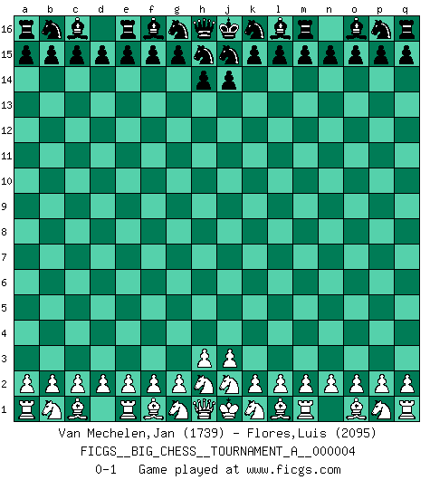 Last move : 0-1 2018 September 29 11:55:45 [Event "FICGS__BIG_CHESS__TOURNAMENT_A__000004"] [Site "FICGS"] [Date "2018.09.26"] [Round "1"] [White "Van Mechelen,Jan"] [Black "Flores,Luis"] [Result "0-1"] [WhiteElo "1739"] [BlackElo "2095"] 0-1 Follow this game move after move (download)I give 98 percent of my mental energy to Chess. Others give only 2 percent. (Bobby Fischer) Schach ist wie eine schöne Frau, zu der wir ständig zurückkehren, gleichviel, wie oft sie uns zurückweist. (Anonymous) El arma más poderosa en el Ajedrez, es tener la próxima movida. (David Bronstein) Les Echecs mettent en conflit, non pas deux intelligences, mais deux volontés. (Lasker) Home computers are being called upon to perform many new functions, including the consumption of homework formerly eaten by the dog. (Doug Larson)