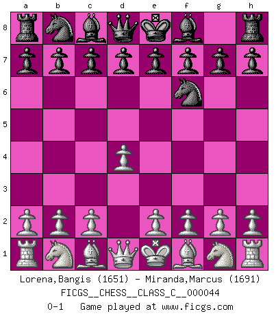 Last move : 0-1 2007 July 2 15:34:36 [Event "FICGS__CHESS__CLASS_C__000044"] [Site "FICGS"] [Date "2007.05.23"] [Round "1"] [White "Lorena,Bangis"] [Black "Miranda,Marcus"] [Result "0-1"] [WhiteElo "1651"] [BlackElo "1691"] 1.d4 Nf6 0-1 This chess game has been lost on time (started : 2007.05.23 5:41:21) Queen's pawn game Player Black won this chess game. Follow this game move after move (download)Nothing excites jaded Grandmasters more than a theoretical novelty. (Dominic Lawson) Später, ... hatte ich zunehmend Erfolg in entscheidenden Partien. Vielleicht weil ich eine einfache Wahrheit erkannte: nicht nur ich hatte Angst, auch mein Gegner. (Mikhail Nekhemyevich Tal) El Ajedrez es tortura mental. (Garry Kasparov) Assurément je connaissais par expérience le mystérieux attrait de ce jeu royal, le seul entre tous les jeux inventés par les hommes qui échappe souverainement à la tyrannie du hasard, le seul où l'on ne doive sa victoire qu'à son intelligence ou plutôt à une certaine forme d'intelligence. Mais n'est-ce pas déjà le limiter injurieusement que d'appeler les échecs un jeu ? N'est-ce pas une science, un art ou quelque chose qui, comme le cercueil de Mahomet entre ciel et terre, est suspendu entre l'un et l'autre, et qui réunit un nombre incroyable de contraires ? [...] C'est une pensée qui ne mène à rien, une mathématique qui n'établit rien, un art qui ne laisse pas d'uvre, une architecture sans matière; et il l'a prouvé néanmoins qu'il était plus durable, à sa manière, que les livres ou que tout autre monument, ce jeu unique qui appartient à tous les peuples et à tous les temps, et dont personne ne sait quel dieu en fit don à la terre pour tuer l'ennui, pour aiguiser l'esprit et stimuler l'âme. Où commence-t-il, où finit-il ? (Stefan Zweig) I think your argument is specious - I think your tie is ugly. (Gregory House to Dr. Foreman, House M.D.)