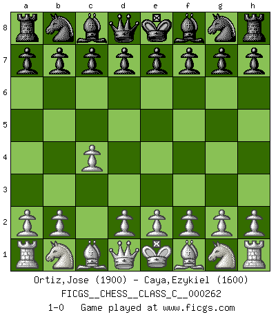 Last move : 1-0 2018 November 29 23:55:25 [Event "FICGS__CHESS__CLASS_C__000262"] [Site "FICGS"] [Date "2018.10.20"] [Round "1"] [White "Ortiz,Jose"] [Black "Caya,Ezykiel"] [Result "1-0"] [WhiteElo "1900"] [BlackElo "1600"] 1.c4 1-0 This chess game has been lost on time (started : 2018.10.20 16:13:52) English Opening Player White won this chess game. Follow this game move after move (download)The isolated Pawn casts gloom over the entire chessboard. (Aaron Nimzovich) Der Verteidiger gebe der Gewalt nach, aber nur der Gewalt. Er schaffe sich nicht freiwillig, etwa aus Blindheit oder aus Schrecken, irgendwelche Schwächen. Er lasse sich nicht bluffen. (Emanuel Lasker) El Ajedrez es realmente noventa y nueve por ciento calculación. (Soltis) Si le désir cupide (et stupide) de gagner est une inépuisable source de souffrance, une combinaison brillante sur l'échiquier est une découverte : le coquelicot qui s'épanouit lorsque apparaît la Voie Lactée. (Arrabal) The project of the man are lower than those of the sky. (Chinese proverb)