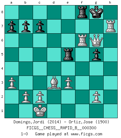 Last move : 1-0 2018 December 19 19:8:44 [Event "FICGS__CHESS__RAPID_B__000300"] [Site "FICGS"] [Date "2018.10.28"] [Round "1"] [White "Domingo,Jordi"] [Black "Ortiz,Jose"] [Result "1-0"] [WhiteElo "2014"] [BlackElo "1900"] 1.e4 Nc6 2.d4 e6 3.Nc3 d5 4.Nf3 h6 5.a3 Bd7 6.exd5 exd5 7.Nxd5 Bd6 8.Bd3 Nf6 9.Qe2+ Be6 10.Nxf6+ Qxf6 11.d5 O-O 12.dxe6 Rae8 13.exf7+ Kxf7 14.Be3 g5 15.O-O-O Bf4 16.h4 Ne5 17.hxg5 Bxe3+ 18.fxe3 hxg5 19.Nxe5+ Rxe5 20.Rdf1 Kg7 21.Rh7+ Kg8 22.Rxf6 Rfe8 23.Qh5 Rf8 24.Qg6+ 1-0 KP : Nimzovich defense Kingside Castling by player Black (move 11) Queenside Castling by player White (move 15) Player White won this chess game. Follow this game move after move (download)What is the object of playing a gambit opening?... To acquire a reputation of being a dashing player at the cost of losing a game. (Siegbert Tarrasch) Im Spitzenschach von heute geht es nur um Vorbereitung, um tiefgründige, sorgfältige Eröffnungsvorbereitung. (Nigel Short) Buenas posiciones no logran ganar juegos, buenas movidas sí. (Gerald Abrahams) Le profane ne songe pas à la somme de jouissance dont il se prive, qui méconnaît ce jeu aux ressources aussi variées que passionnantes. (Jean-Marie Jeanton-Lamarche) Control your own destiny or someone else will. (Jack Welch)
