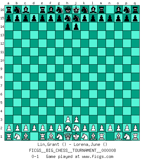 Last move : 0-1 2007 June 23 20:37:11 [Event "FICGS__BIG_CHESS__TOURNAMENT__000008"] [Site "FICGS"] [Date "2007.05.24"] [Round "1"] [White "Lin,Grant"] [Black "Lorena,June"] [Result "0-1"] [WhiteElo ""] [BlackElo ""] 0-1 This big chess game has been lost on time (started : 2007.05.24 19:48:21) Follow this game move after move (download)A man that will take back a move at Chess will pick a pocket. (Richard Fenton) Als ich elf wurde, wurde ich einfach gut. (Robert James Fischer) Ciertamente el estado mental actual de Bobby Fischer es una tragedia. Uno de los mas grandes jugadores de Ajedrez del mundo -el orgullo y pena del Ajedrez Americano. (Frank Brady) Même si vous avez un bon coup à faire, regardez toujours s'il n'y en a pas un qui lui soit préférable. (Pedro Damiano) The modern world has divided itself into Conservatives and Progressives. The business of Progressives is to go on making mistakes. The business of the Conservatives is to prevent the mistakes from being corrected. (G.K. Chesterton)