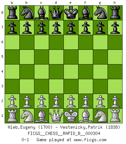 Last move : 0-1 2018 December 22 2:24:26 [Event "FICGS__CHESS__RAPID_B__000304"] [Site "FICGS"] [Date "2018.11.21"] [Round "1"] [White "Hleb,Evgeny"] [Black "Vestenicky,Patrik"] [Result "0-1"] [WhiteElo "1700"] [BlackElo "1838"] 0-1 This chess game has been lost on time (started : 2018.11.21 21:42:7) Player Black won this chess game. Follow this game move after move (download)Excellence at Chess is one mark of a scheming mind. (Sir Arthur Conan Doyle) Es gibt Leute, die glauben, alles wäre vernünftig, was man mit einem ernsthaften Gesicht tut. (Georg Christoph Lichtenberg) Coloca el contenido del tablero de Ajedrez en un sombrero, agita las piezas vigorosamente, derrámalas en el tablero desde una altura de medio metro y así obtienes el estilo de Wilhelm Steinitz. (H. E. Bird) Tous ces prétendus hommes politiques sont les pions, les Cavaliers, les Tours ou les Fous d'une partie d'échecs qui se jouera tant qu'un hasard ne renversera pas l'échiquier. (Honoré de Balzac) There are more things in heaven and earth than practically anywhere else. (Unknown)
