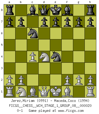 Last move : 0-1 2019 January 3 4:4:30 [Event "FICGS__CHESS__WCH_STAGE_1_GROUP_08__000020"] [Site "FICGS"] [Date "2018.11.23"] [Round "1"] [White "Jerez,Miriam"] [Black "Maceda,Coco"] [Result "0-1"] [WhiteElo "0991"] [BlackElo "1994"] 1.e4 c5 2.c4 Nc6 3.Nf3 Nf6 4.d4 cxd4 5.Nxd4 Nxe4 0-1 This chess game has been lost on time (started : 2018.11.23 19:5:50) Sicilian defense Player Black won this chess game. Follow this game move after move (download)Chess is a forcing house where the fruits of character can ripen more fully than in life. (Edward Morgan Foster) Du weisst es gibt ein Problem mit Computern und Fernschach, wenn jeder eine Rating von 2450 hat. (John Christen Knudsen) Aquel que teme a un Peón de Reina aislado, debería de retirarse del Ajedrez. (Siegbert Tarrasch) Assurément je connaissais par expérience le mystérieux attrait de ce jeu royal, le seul entre tous les jeux inventés par les hommes qui échappe souverainement à la tyrannie du hasard, le seul où l'on ne doive sa victoire qu'à son intelligence ou plutôt à une certaine forme d'intelligence. Mais n'est-ce pas déjà le limiter injurieusement que d'appeler les échecs un jeu ? N'est-ce pas une science, un art ou quelque chose qui, comme le cercueil de Mahomet entre ciel et terre, est suspendu entre l'un et l'autre, et qui réunit un nombre incroyable de contraires ? [...] C'est une pensée qui ne mène à rien, une mathématique qui n'établit rien, un art qui ne laisse pas d'uvre, une architecture sans matière; et il l'a prouvé néanmoins qu'il était plus durable, à sa manière, que les livres ou que tout autre monument, ce jeu unique qui appartient à tous les peuples et à tous les temps, et dont personne ne sait quel dieu en fit don à la terre pour tuer l'ennui, pour aiguiser l'esprit et stimuler l'âme. Où commence-t-il, où finit-il ? (Stefan Zweig) Nowadays, anyone who cannot speak English and is incapable of using the Internet is regarded as backward. (Al-Waleed bin Talal)
