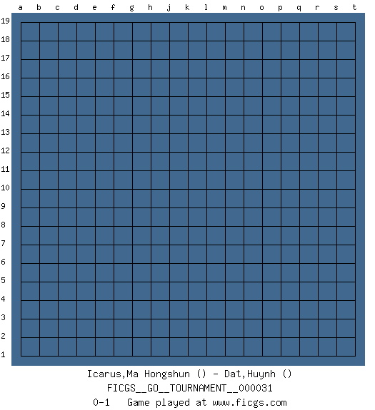 Last move : 0-1 2019 February 7 19:35:15 [Event "FICGS__GO__TOURNAMENT__000031"] [Site "FICGS"] [Date "2019.01.08"] [Round "1"] [Black "Icarus,Ma Hongshun"] [White "Dat,Huynh"] [Result "0-1"] 0-1 This go game has been lost on time (started : 2019.01.08 13:8:57) Here are the names of the openings (joseki) played in the four corners : Player White won this Go (weiqi, baduk) game. Follow this game move after move (download)With less than 15 stones in danger, tenuki. (Anonymous) We need strong personalities and only one world champion to attract sponsors. (Anatoly Karpov)