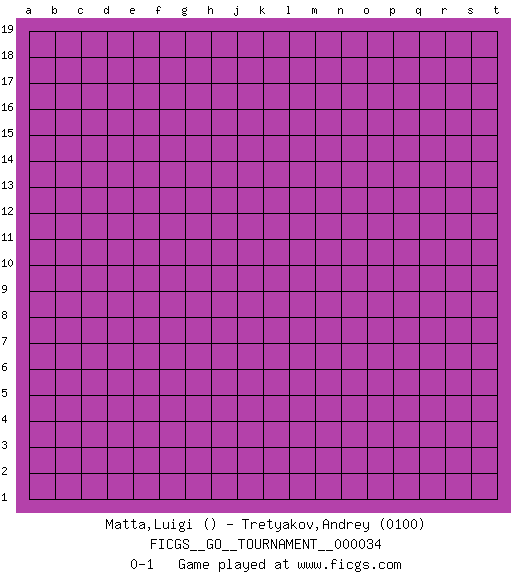 Last move : 0-1 2019 March 11 22:49:8 [Event "FICGS__GO__TOURNAMENT__000034"] [Site "FICGS"] [Date "2019.02.09"] [Round "1"] [Black "Matta,Luigi"] [White "Tretyakov,Andrey"] [Result "0-1"] [Rating 2 "0100"] 0-1 This go game has been lost on time (started : 2019.02.09 17:55:51) Here are the names of the openings (joseki) played in the four corners : Player White won this Go (weiqi, baduk) game. Follow this game move after move (download)A basic: Don't push too hard. (Jansteen) Do you know these so called Volunteers don't even get paid! (Simpsons)