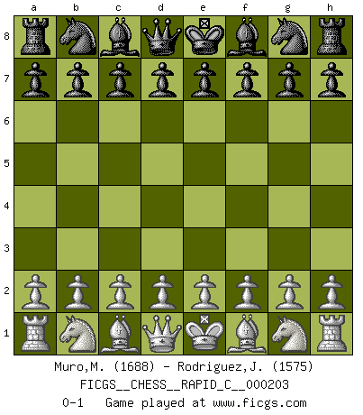 Last move : 0-1 2019 March 11 22:49:8 [Event "FICGS__CHESS__RAPID_C__000203"] [Site "FICGS"] [Date "2019.02.09"] [Round "1"] [White "Muro,Manuel"] [Black "Rodriguez,Juan Antonio"] [Result "0-1"] [WhiteElo "1688"] [BlackElo "1575"] 0-1 This chess game has been lost on time (started : 2019.02.09 21:22:8) Player Black won this chess game. Follow this game move after move (download)Every Chess master was once a beginner. (Chernev) Vielleicht wirkt die Aura früherer Spieler glanzvoller als die der heutigen Spieler, aber das liegt daran, dass man kein Programm wie Fritz hatte, das einem all die Löcher in ihren Partien zeigt. (Vladimir Kramnik) Solo existe una cosa que Fischer hace en el Ajedrez sin placer: ¡perder!. (Boris Spassky) On peut tirer plus d'utilité d'une partie perdue que de 100 parties gagnées. (Capablanca) I have opinions of my own - strong opinions - but I don't always agree with them. (George Bush)