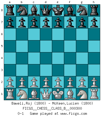 Last move : 0-1 2019 March 29 12:56:56 [Event "FICGS__CHESS__CLASS_B__000300"] [Site "FICGS"] [Date "2019.02.17"] [Round "1"] [White "Baweli,Roj"] [Black "McKeen,Lucien"] [Result "0-1"] [WhiteElo "1800"] [BlackElo "1800"] 0-1 This chess game has been lost on time (started : 2019.02.17 4:20:14) Player Black won this chess game. Follow this game move after move (download)When you play Bobby, it is not a question if you win or lose. It is a question if you survive. (Boris Spassky) Versuche, dich von der Sklaverei der Eröffnungsvarianten zu befreien. Stattdessen soll man gewisse Typenpositionen erlernen, die man eingehend analysiert. (Aaron Nimzowitsch) Yo jugué Ajedrez con el y a veces le pude haber ganado solo que siempre devuelve su última jugada y juega la partida de manera diferente. (Mark Twain) Il n'y a plus de joueurs du niveau de Jacob Murray dont la seule quête est le beau jeu, le plaisir de voir les pièces construire quelque chose. Sur 10 idées à la minute, 9 seront sans intérêt, la dernière s'avèrera géniale. (Christian Bauer) Hold em is to stud what chess is to checkers. (Johnny Moss)