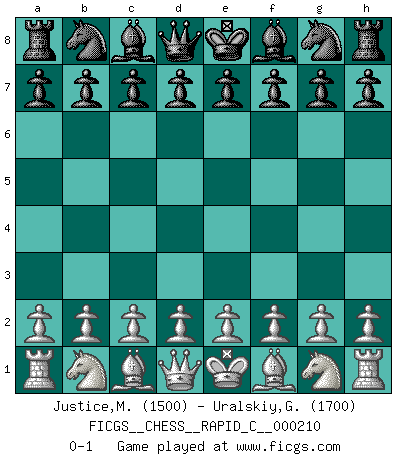 Last move : 0-1 2019 May 30 22:44:9 [Event "FICGS__CHESS__RAPID_C__000210"] [Site "FICGS"] [Date "2019.04.30"] [Round "1"] [White "Justice,Michael"] [Black "Uralskiy,Georgiy"] [Result "0-1"] [WhiteElo "1500"] [BlackElo "1700"] 0-1 This chess game has been lost on time (started : 2019.04.30 12:53:3) Player Black won this chess game. Follow this game move after move (download)Chess is a beautiful mistress. (Bent Larsen) Woher wissen wir, daß der Neanderthaler Blindschach gespielt hat? -- Bei Ausgrabungen wurden keine Schachbretter und Figuren gefunden. (Anonymous) Botvinnik trataba de restarle el misterio al Ajedrez, siempre relacionandolo a situaciones de la vida ordinaria. El gustaba de llamar al Ajedrez un típico problema inexacto similar a aquellos de los cuales la gente siempre tiene que enfrentarse en la vida cotidiana. (Garry Kasparov) Nous vivons dans un monde échiquéen : chaque jour qui passe est un défi à relever. (Philosophe Sasha) I take risks, sometimes patients die, but not taking risks causes more patients to die. So I guess my biggest problem is I've been cursed with the ability to do the math. (Gregory House, House M.D.)