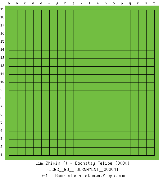 Last move : 0-1 2019 July 18 7:47:2 [Event "FICGS__GO__TOURNAMENT__000041"] [Site "FICGS"] [Date "2019.06.17"] [Round "1"] [Black "Lim,Zhixin"] [White "Bochatay,Felipe"] [Result "0-1"] [Rating 2 "0000"] 0-1 This go game has been lost on time (started : 2019.06.17 22:49:26) Here are the names of the openings (joseki) played in the four corners : Player White won this Go (weiqi, baduk) game. Follow this game move after move (download)The intersection is rarely neutral. (Pierre Audouard) I have opinions of my own - strong opinions - but I don't always agree with them. (George Bush)