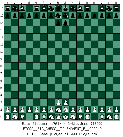 Last move : 0-1 2019 June 22 22:14:38 [Event "FICGS__BIG_CHESS__TOURNAMENT_B__000012"] [Site "FICGS"] [Date "2019.06.22"] [Round "1"] [White "Rita,Giacomo"] [Black "Ortiz,Jose"] [Result "0-1"] [WhiteElo "1761"] [BlackElo "1600"] 0-1 Follow this game move after move (download)We must make sure that Chess will not be like a dead language, very interesting, but for a very small group. (Sytze Faber) Den Ruhm habe ich schon, jetzt brauche ich noch das Geld. (Wilhelm Steinitz) El Ajedrez es realmente noventa y nueve por ciento calculación. (Soltis) La conception d'un plan est le processus par lequel un joueur exploite les avantages de sa position tout en s'efforçant d'en réduire au minimum les inconvénients. Afin de garantir le succès, un plan doit toujours se fonder sur un diagnostic objectif des particularités d'une position. La conception d'un plan est d'autant plus difficile que la position est équilibrée, et grandement facilitée lorsqu'il n'existe qu'un seul plan susceptible de répondre aux exigences de la position. (Harry Golombek) The question of whether computers can think is just like question of whether submarines can swim. (Edsger W. Dijkstra)