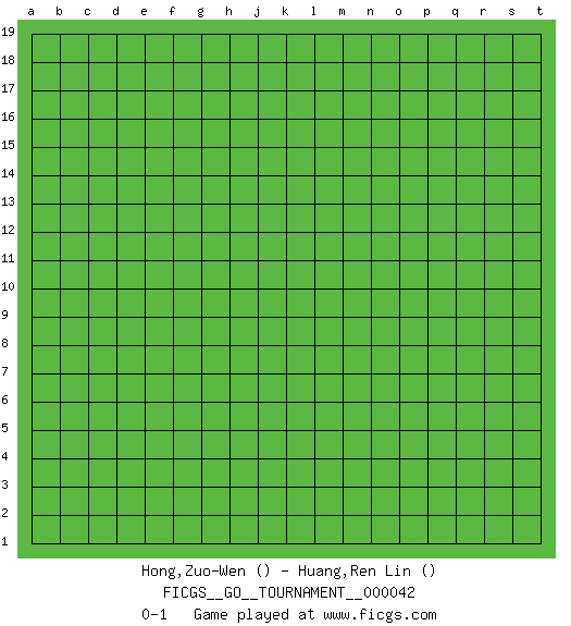 Last move : 0-1 2019 August 10 21:45:52 [Event "FICGS__GO__TOURNAMENT__000042"] [Site "FICGS"] [Date "2019.07.11"] [Round "1"] [Black "Hong,Zuo-Wen"] [White "Huang,Ren Lin"] [Result "0-1"] 0-1 This go game has been lost on time (started : 2019.07.11 12:8:41) Here are the names of the openings (joseki) played in the four corners : Player White won this Go (weiqi, baduk) game. Follow this game move after move (download)When you study joseki, you lose two stones in strength. (Anonymous) A generalist learns less and less about more and more until he knows nothing about everything. (Author unknown)