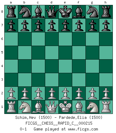Last move : 0-1 2019 August 13 12:56:1 [Event "FICGS__CHESS__RAPID_C__000215"] [Site "FICGS"] [Date "2019.07.14"] [Round "1"] [White "Schim,Hev"] [Black "Pardede,Elia"] [Result "0-1"] [WhiteElo "1500"] [BlackElo "1500"] 0-1 This chess game has been lost on time (started : 2019.07.14 1:37:41) Player Black won this chess game. Follow this game move after move (download)A Chess game is divided into three stages: the first, when you hope you have the advantage, the second when you believe you have an advantage, and the third... when you know you're going to lose ! (Savielly Tartakower) In der Schule lernt man nichts. Es ist nur Zeitverschwendung. (Robert James Fischer) Existen dos clases de sacrificios: los correctos y los míos. (Mikhail Tal) La guerre est enfant de la passion, la passion est enfant du narcissisme et le narcissisme est l'enfant. (...) Une autre partie ? (Thibault de Vassal) Once you start thinking you have nothing left to learn, you have everything to learn. (Steve Badget)