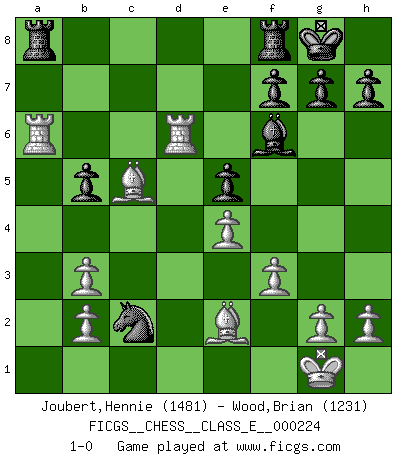 Last move : 1-0 2019 September 15 2:22:24 [Event "FICGS__CHESS__CLASS_E__000224"] [Site "FICGS"] [Date "2019.07.19"] [Round "1"] [White "Joubert,Hennie"] [Black "Wood,Brian"] [Result "1-0"] [WhiteElo "1481"] [BlackElo "1231"] 1.e4 c5 2.Nf3 d6 3.d4 cxd4 4.Nxd4 Nf6 5.Nc3 a6 6.Be2 e5 7.Nb3 Nc6 8.Be3 Be6 9.Qd2 Be7 10.Nd5 O-O 11.Nxf6+ Bxf6 12.O-O b5 13.Rfd1 Be7 14.f3 Bf6 15.Qxd6 Qxd6 16.Rxd6 Bxb3 17.cxb3 Nb4 18.Rc1 Nxa2 19.Ra1 Nb4 20.Bc5 Nc2 21.R1xa6 1-0 Sicilian : Najdorf, Opovcensky variation Kingside Castling by player Black (move 10) Kingside Castling by player White (move 12) Player White won this chess game. Follow this game move after move (download)That's what Chess is all about. One day you give your opponent a lesson, the next day he gives you one. (Bobby Fischer) Die Auseinandersetzung mit Karpow war politisch geprägt. Er stand für das kommunistische System, wurde von dessen Repräsentanten gehätschelt. Ich war der Oppositionelle. Jeder Schachweltmeister spiegelt auch die gesellschaftlichen Verhältnisse wider. Kramnik steht für die Börsen-Generation des Neuen Markts, ideologiefrei, zahlenfixiert. (Garry Kasparov) En el Ajedrez, cuando menos, el valiente hereda la tierra. (Edmar Mednis) Un journaliste : 'Vous préférez avoir une dame de plus sur l'échiquier ou au lit ?' Boris Spassky : 'Ca dépend de la position.' If things go wrong, don't go with them. (Roger Babson)