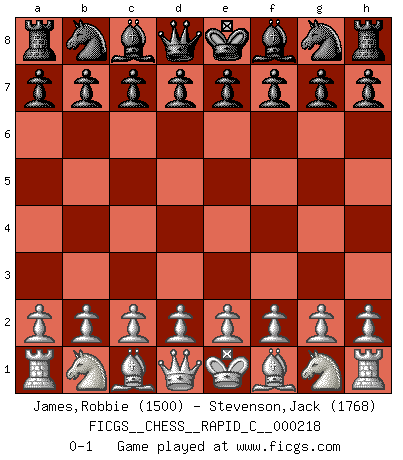 Last move : 0-1 2019 September 24 3:29:30 [Event "FICGS__CHESS__RAPID_C__000218"] [Site "FICGS"] [Date "2019.08.24"] [Round "1"] [White "James,Robbie"] [Black "Stevenson,Jack"] [Result "0-1"] [WhiteElo "1500"] [BlackElo "1768"] 0-1 This chess game has been lost on time (started : 2019.08.24 17:50:52) Player Black won this chess game. Follow this game move after move (download)On the chessboard, lies and hypocrisy do not survive long. (Emanuel Lasker) Spielt Blackmar-Diemer-Gambit, und das Matt kommt von selbst! (Emil Joseph Diemer) Yo considero que Fischer es uno de los expertos mas grandes de aperturas de siempre. (Keith Hayward) À la honte des hommes, on sait que les lois du jeu sont les seules qui soient partout justes, claires, inviolables et exécutées. Pourquoi l'Indien qui a donné les règles du jeu d'échecs est-il obéi de bon gré dans toute la terre, et que les décrétales des papes, par exemple, sont aujourd'hui un objet d'horreur et de mépris ? C'est que l'inventeur des échecs combina tout avec justesse pour la satisfaction des joueurs, et que les papes, dans leurs décrétales, n'eurent en vue que leur seul avantage. L'Indien voulut exercer également l'esprit des hommes et leur donner du plaisir; les papes ont voulu abrutir l'esprit des hommes. Voltaire (Dictionnaire philosophique / Garnier 1967) Yoga is 99% practice and 1% knowledge. (Sri Krishna Pattabhi Jois)