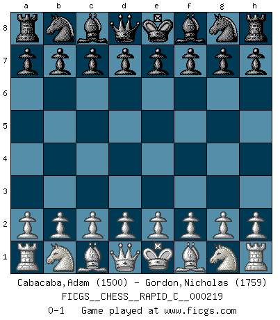 Last move : 0-1 2019 September 27 12:17:57 [Event "FICGS__CHESS__RAPID_C__000219"] [Site "FICGS"] [Date "2019.08.28"] [Round "1"] [White "Cabacaba,Adam"] [Black "Gordon,Nicholas"] [Result "0-1"] [WhiteElo "1500"] [BlackElo "1759"] 0-1 This chess game has been lost on time (started : 2019.08.28 1:30:11) Player Black won this chess game. Follow this game move after move (download)In Fischer's hands, a slight theoretical advantage is as good a being a Queen ahead. (Isaac Kashdan) Ich kenne keine einzige Person, die behaupten würde, Garri Kasparow sei ein guter Mensch (Nigel Short) Cuando tengo las piezas blancas, yo gano porque soy blanco; Cuando tengo las piezas negras, yo gano porque soy Bogolyubov. (Bogolyubov) Botvinnik disait en comparant les échecs à la musique: Il existe une science dont le but est l'étude de l'acoustique et des sons. Mais il y a aussi un art qui se sert de l'océan des sons : c'est la musique. De toute évidence, il en est de même pour la pensée. La logique est l'étude des lois de la réflexion et les échecs reflètent, en tant qu'art, le côté logique de la réflexion, sous la forme d'images artistiques... Extrait de Fischer - Spassky, Reykjavik 1972 par Alexander & F. Wyndham (Ed. Solar), p 37. The hypothalamus is one of the most important parts of the brain, involved in many kinds of motivation, among other functions. The hypothalamus controls the 'Four Fs: Fighting, Fleeing, Feeding and Mating. (Unknown author)